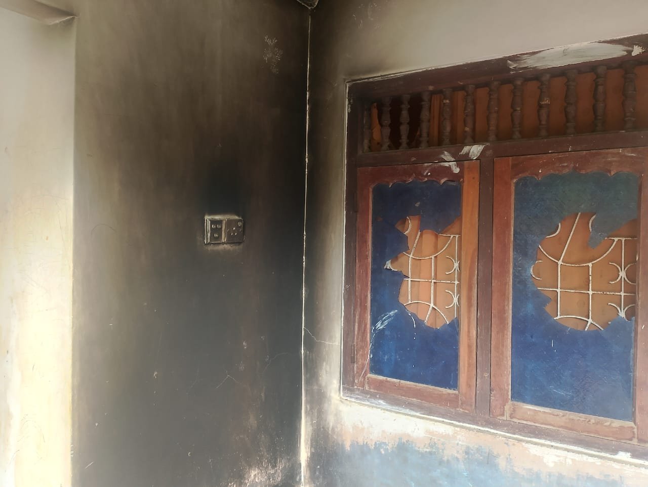 அந்தக் கும்பல் அத்துமீறி வீட்டுக்குள் நுழைய முயற்சித்ததோடு, வீட்டின் ஜன்னல் கண்ணாடிகளை அடித்து நொறுக்கிவிட்டுத்தான் பெட்ரோல் குண்டையும் வீசியிருக்கிறார்கள்.